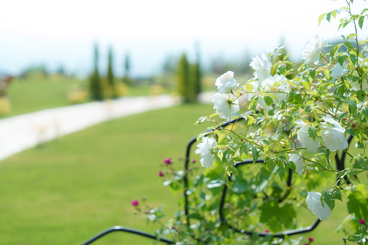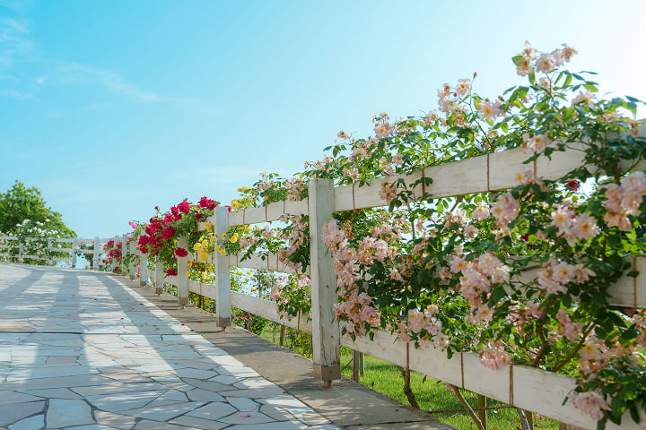 素晴らしい景観と花と緑に囲まれた